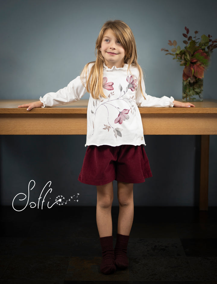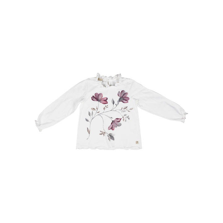 T-shirt manica lunga in jersey di cotone elasticizzato colore latte.