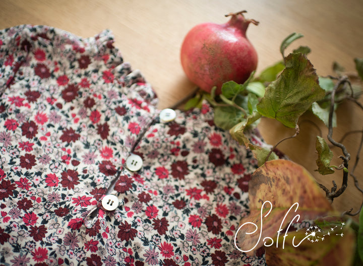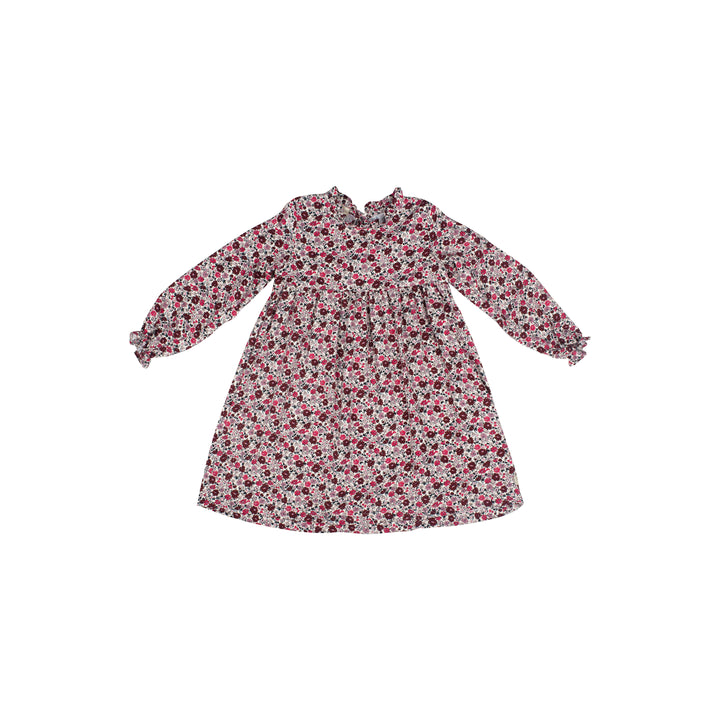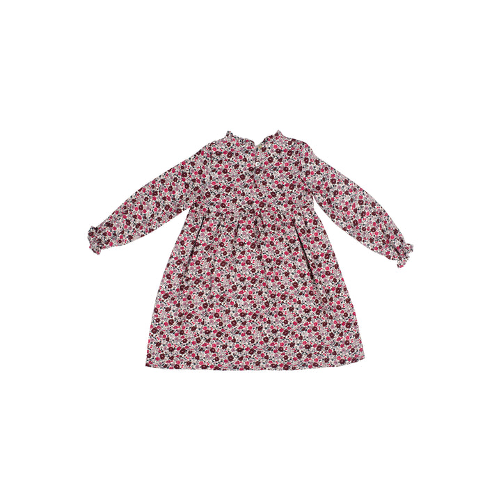 Abito manica lunga in viscosa stampa micro fiorellini nei toni del burgundy.