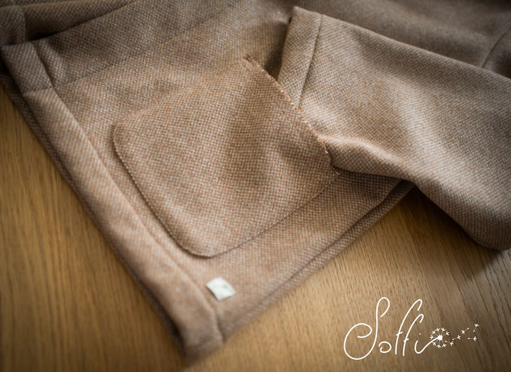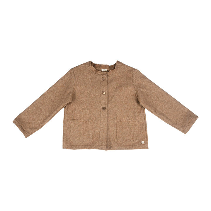Cappottino corto in lana operata colore caramello.
